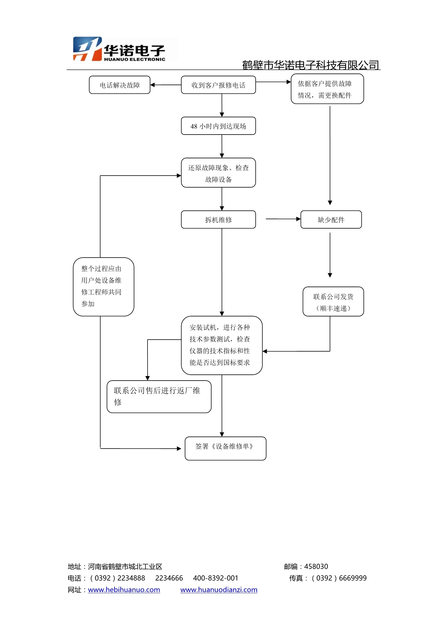 為規(guī)范售后服務(wù)工作,滿足用戶的的需求,保證用戶在使用我公司產(chǎn)品時,能發(fā)揮大的效益,提高用戶對產(chǎn)品的滿意度和信任度,提高產(chǎn)品的市場占有率,制定售后服務(wù)維修流程圖流程。如在使用過程中出現(xiàn)問題請及時聯(lián)系廠家。24小時服務(wù)熱線:400-8392-001